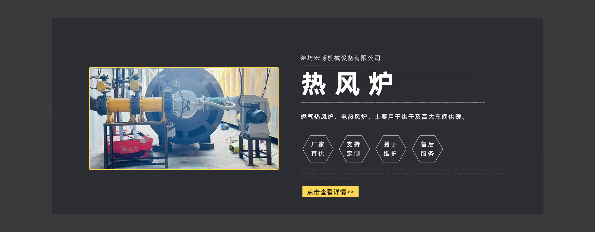 濰坊宏博機械設備有限公司是從事熱風爐、烘干設備、供暖設備的研發(fā)、設計、制造和服務于一體的實體企業(yè)。長期以來,企業(yè)以市場的發(fā)展和客戶的需求為導向,集多年的生產技術與經驗為一體,不斷開發(fā)和優(yōu)良產品。